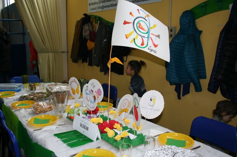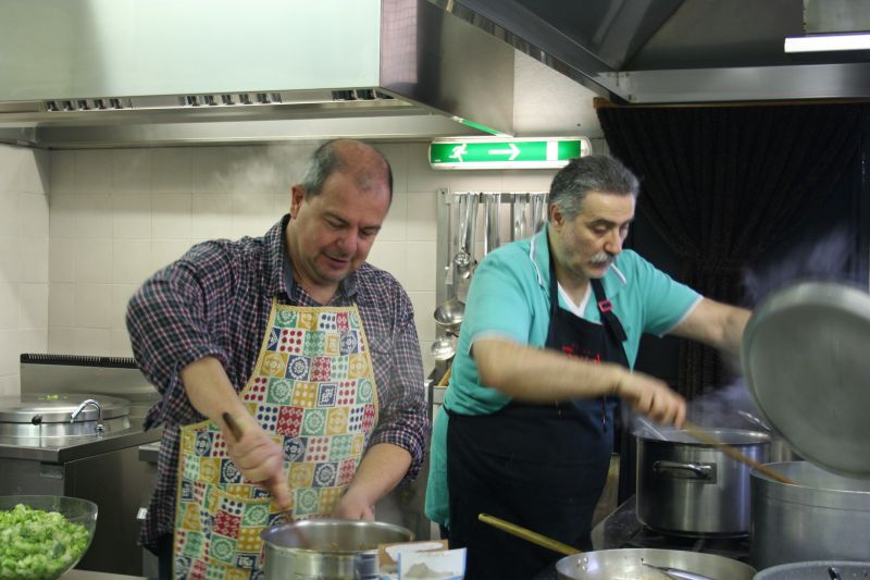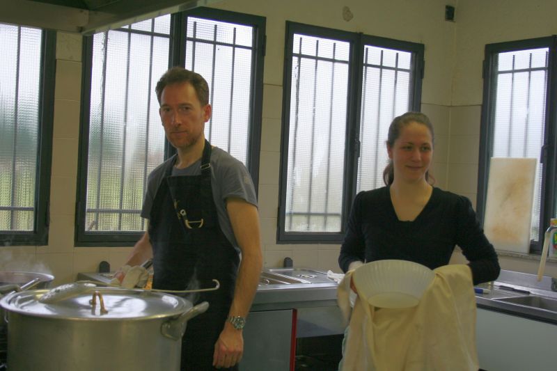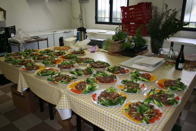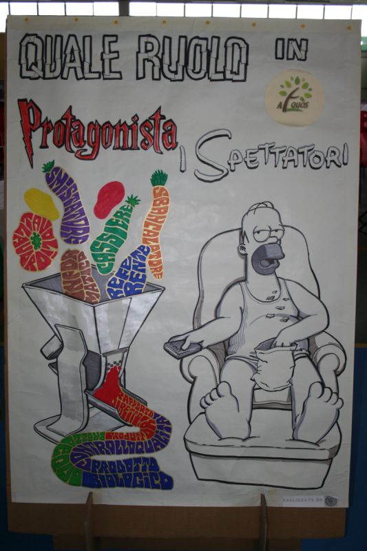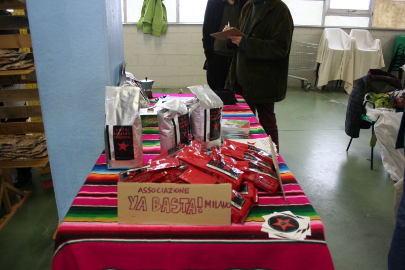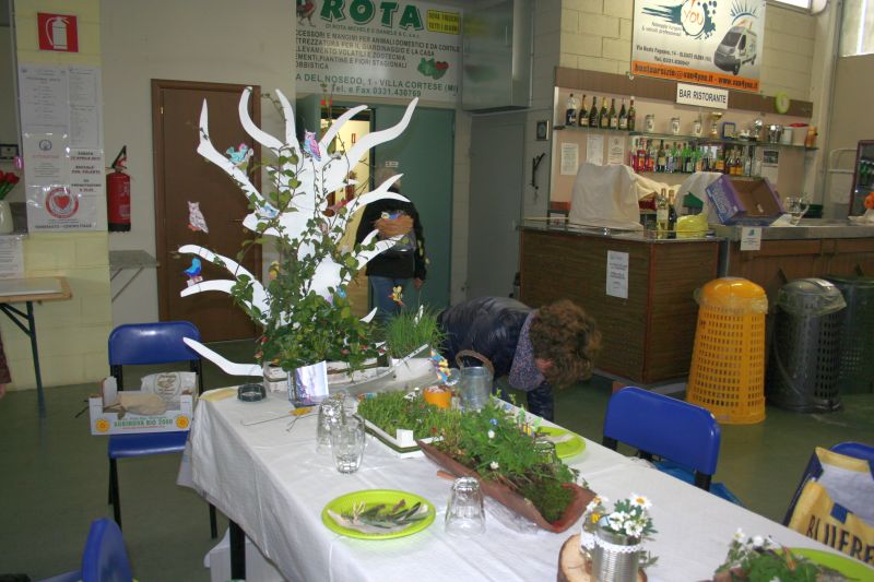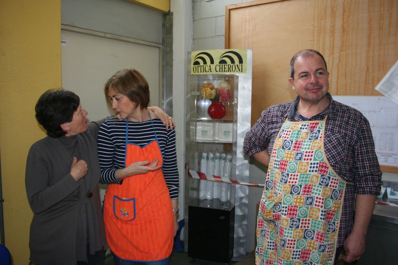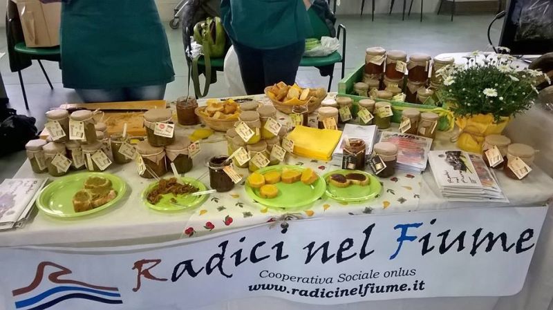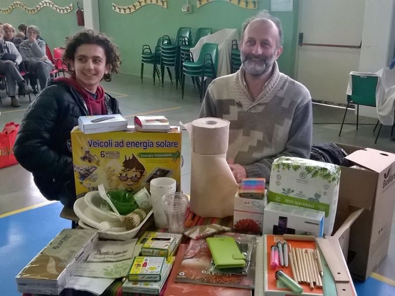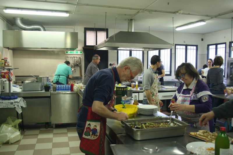 Per la mise en table vasetti zincati e piantine aromatiche, fra le quali un timo dal profumo prepotente e una campanella viola come dipinta. La tovaglia è un prestito della Rita (la mia mamma, ndr), un lontano regalo savonese dai colori primaverili. Giusto il tempo per un giretto fra biscotti e taralli dell'economia carceraria, le creme di verdura e le conserve di frutta con cui presto una cooperativa sociale arricchirà il listino settimanale, caffè e zucchero zapatisti, prodotti in carta e plastica riciclate, tessili bio. Poi il tavolo si riempie; purtroppo l'influenza ci ha privati di una presenza, ma quest'anno è ospite del nostro Happygas il fantastico quartetto Bianchi, che di questi tempi ci delizia con cicorini rossi e verdi che sono una bontà. Papà Claudio, Matteo e Giorgia, eredi di tanta rurale sapienza, che hanno scelto di restare, insieme, a occuparsi delle terre di famiglia, e il di lei moroso, Michael. Fra una torta salata e un risotto al vino si lasciano intervistare, pazienti e appassionati, e rispondono nella meravigliosa parlata romagnola, a ogni nostra curiosità su ettari e prodotti che crescono e ci manderanno nei prossimi mesi, da Cesena; ci raccontano di pozzi e nascenti consorzi per l'acqua, bene prezioso che talvolta scarseggia. Alla fine ci ritroviamo affamati di dolci fragole e succosi meloni e cocomeri. Di ritorno da un'altra tavolata di gasisti ai suoi favolosi calzettoni biologici in alpaca, cotone e canapa, si intrattiene con noi il primo dei nostri commensali, stagione 2016, invitandoci a una gita sul Garda con tappa al calzificio Zambelli. Dopo la consueta scorpacciata di ogni ben di Dio e prodotto dell'Uomo, si riordina e si condividono abbondanti e gustosi avanzi della mega cucina, prima di andare tutti all'atteso incontro coi produttori. Questa volta il tema è serio: il bio, gli enti certificatori, i controlli sul campo e sulla carta. I protagonisti si raccontano, il tempo passa in fretta senza che ci togliamo la voglia di conoscere meglio questi coraggiosi fornitori di bontà, alcuni autentici pionieri, tutti che rivendicano la priorità del bio sulla chimica. Torniamo a casa un po' più consapevoli, progettando spedizioni estive e vacanze solidali, ricordando sorrisi e sognando ortaggi freschi e frutta profumata. Bianchi e Zambelli, tremate: Happy comitiva in arrivo sul primo binario. Angelica