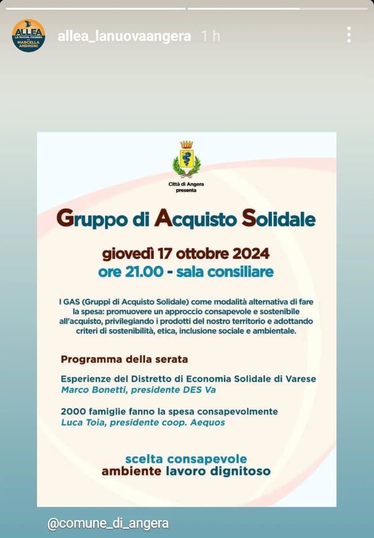 In accordo con l'amministrazione di Angera, il DES, il presidente di Aequos anche il nostro GAS è stato invitato a dare testimonianza della propria attività sul territorio
