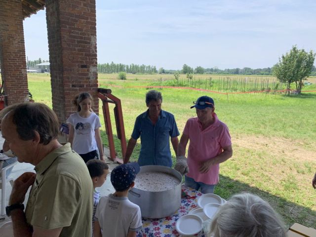 La giornata è stata piacevole e molto interessante. Nei pressi dell'azienda ci siamo fermati a dare un'occhiata al borgo antico, ben conservato e visitabile in poco tempo. Appena arrivati siamo stati accolti calorosamente da Maria ed i suoi collaboratori che ci hanno offerto un caffè e poi ci hanno mostrato l'azienda con i suoi macchinari, l'area dedicata allo stoccaggio e al confezionamento, i campi circostanti, il piccolo museo agricolo allestito, e il negozio. Verso la una ci siamo gustati un buon risotto con fagioli e salsiccia (senza salsiccia per i vegetariani) a cui abbiamo aggiunto qualche prodotto condiviso. Nel pomeriggio c'è stata una conferenza sulla gestione dell'acqua all'interno del Parco del Ticino (sponda Lombarda) e le implicazioni derivanti dai cambiamenti climatici e per l'agricoltura. Un'aspetto secondo me molto interessante, emerso durante la spiegazione, è che le aziende agricole e le aziende produttrici di riso in particolare, non consumano ma utilizzano l'acqua. Questo perchè l'acqua impiegata filtra nel terreno e quindi torna ad alimentare le falde. Per concludere direi che la gita e la visita dell'azienda Rovasenda sono un'esperienza sicuramente da consigliare a tutti i gasisti, l'occasione per passare una giornata diversa in compagnia ed imparare qualcosa di nuovo sulle persone e le realtà che ci forniscono i prodotti. Ugo
