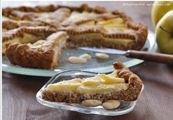 Ricavarne un disco per il fondo della crostata (da adagiare in una teglia per crostate ) e le strisce per poi ricoprire la farcitura. Tagliare le mele sbucciate a fettine e bagnarle col succo di limone.