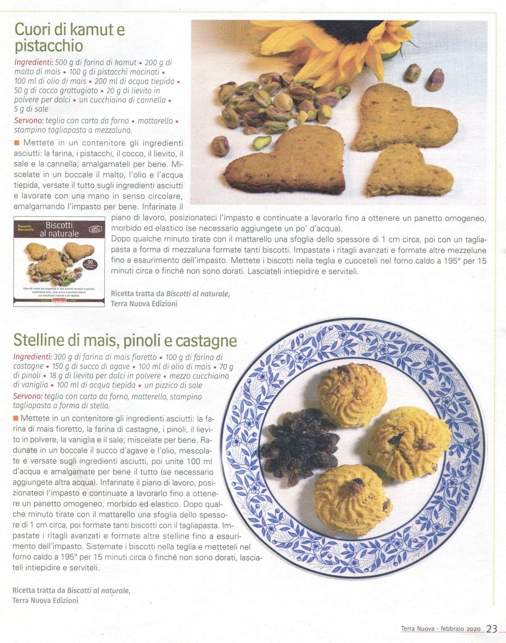 Cuori di kamut e pistacchio e stelline di mais, pinoli e castagne